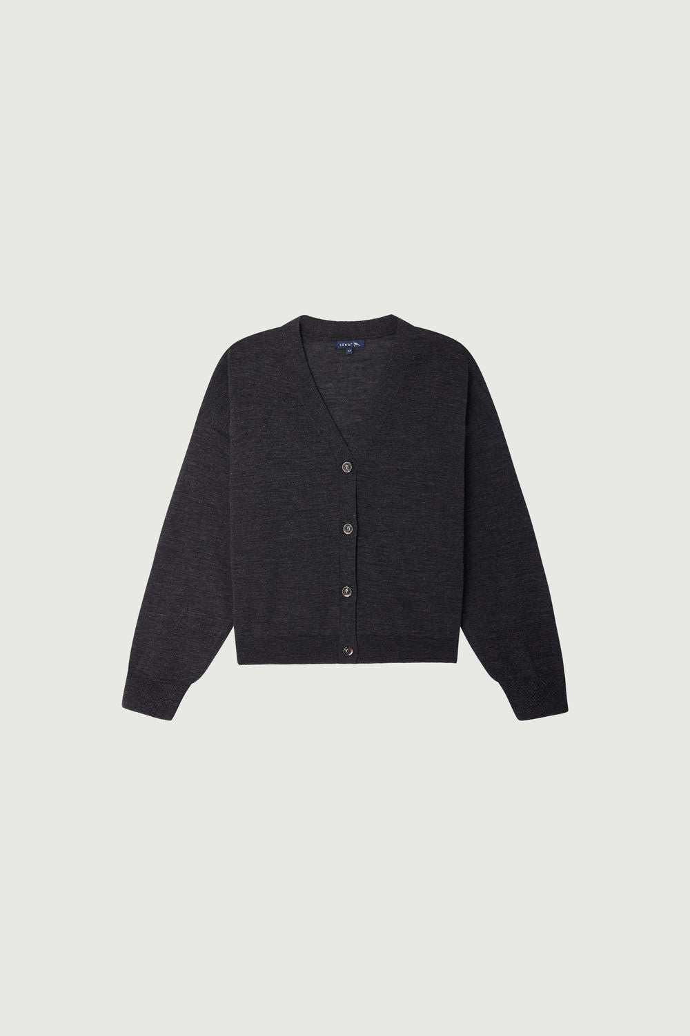 IDEM is a loose cardigan with a wide V-neckline. It's knitted in fine merino wool to be worn directly against the skin. Ribbed trims tighten the bottom of the body and the sleeves. The dropped shoulders and side slits add a modern touch to this deceptively classic cardigan.