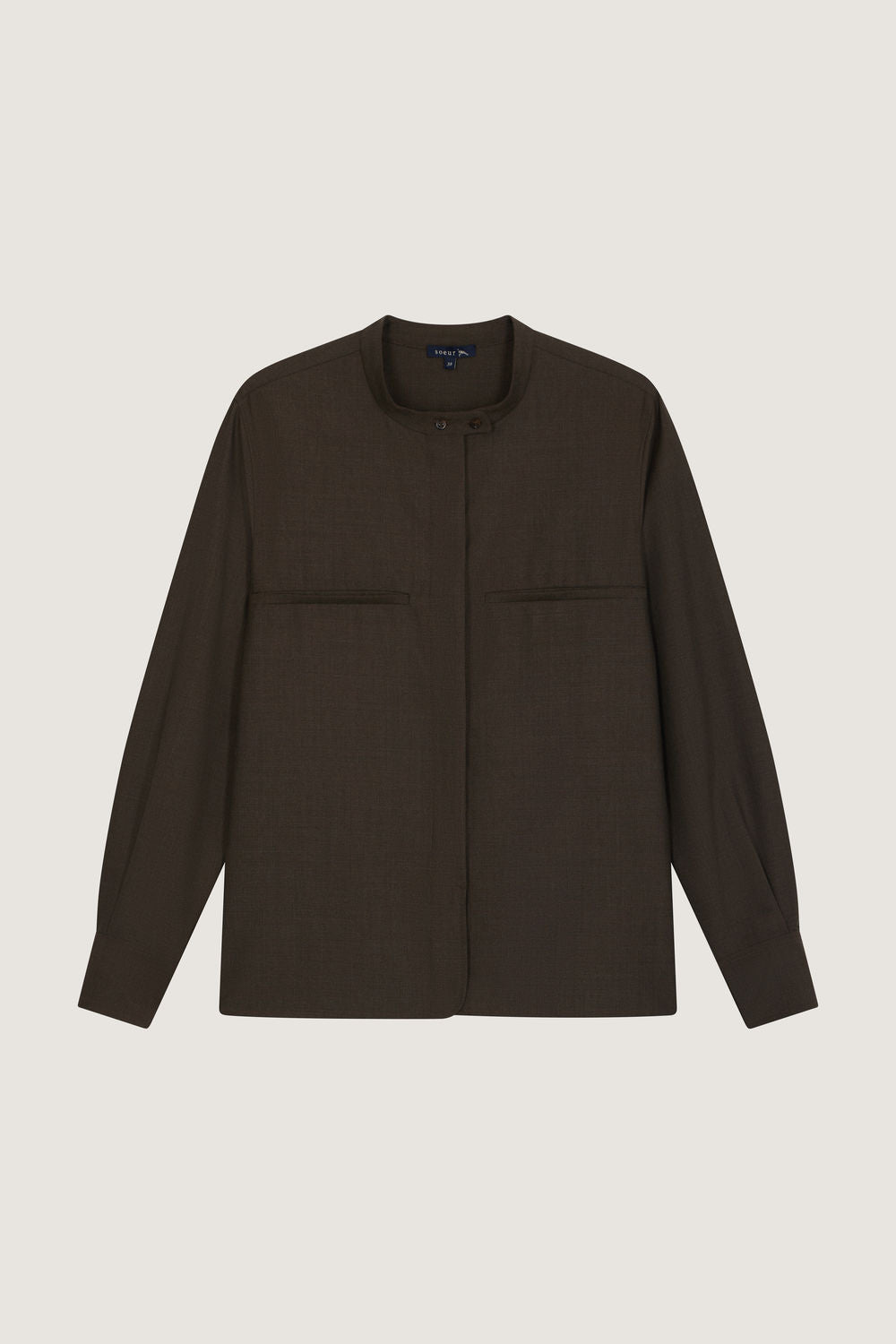 Woolen cloth shirt - Straight cut- Round neckline with button placket- Welt pockets- Concealed button placket front fastening- Buttoned shirt cuffs This piece is certified OEKO-TEX® Standard 100.