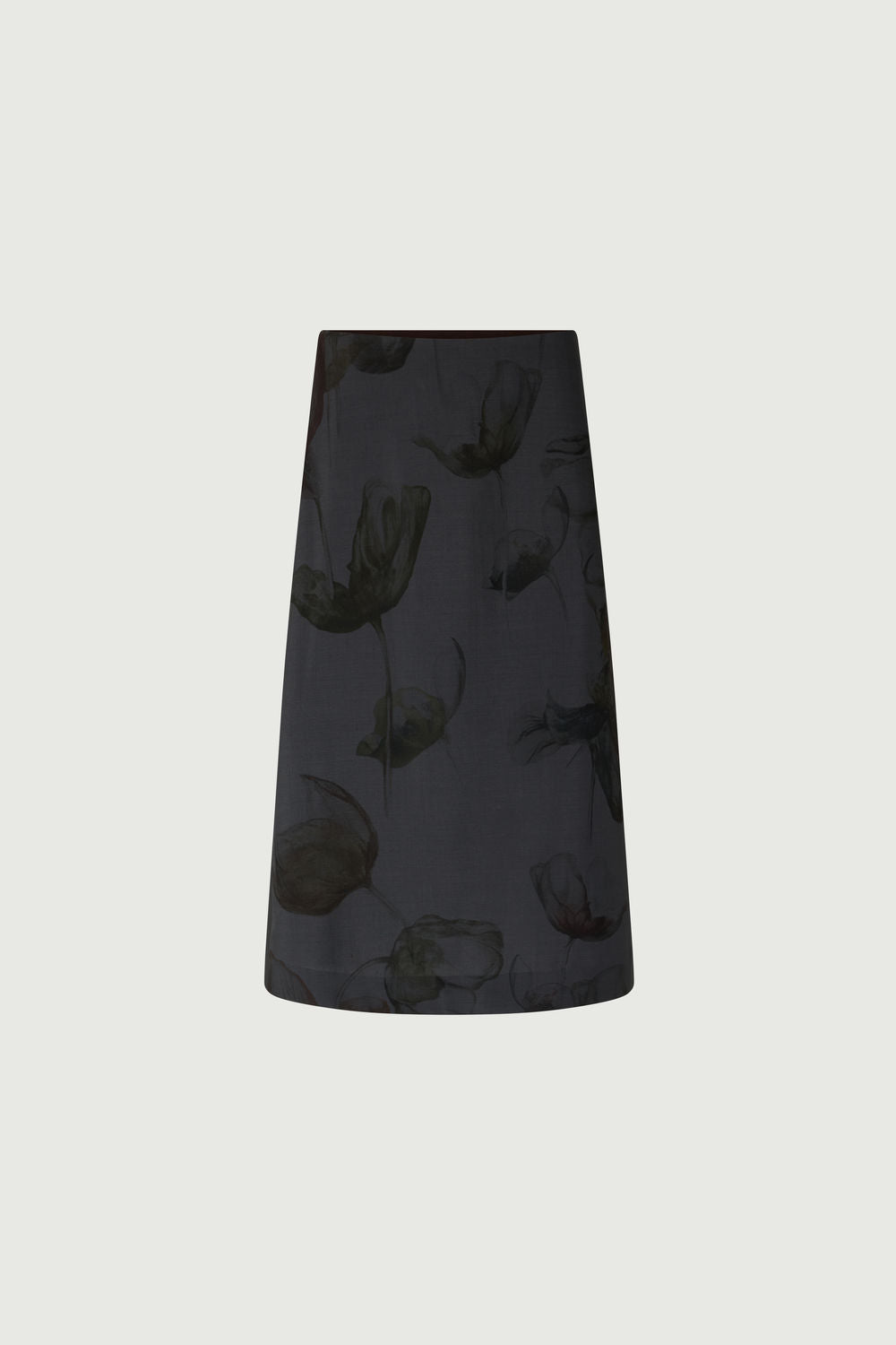 VALET is a skirt crafted from printed wool canvas. Perfect for a modern and sophisticated look, this skirt stands out with its unique print, adding a touch of creativity to your outfits.