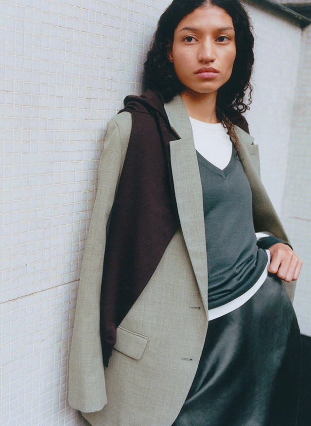 JANSEN is a virgin wool pullover with an artisanal spirit, knitted in a thick and cozy stitch. Its raw-edge finishes and “handmade” look enhance its authentic character.