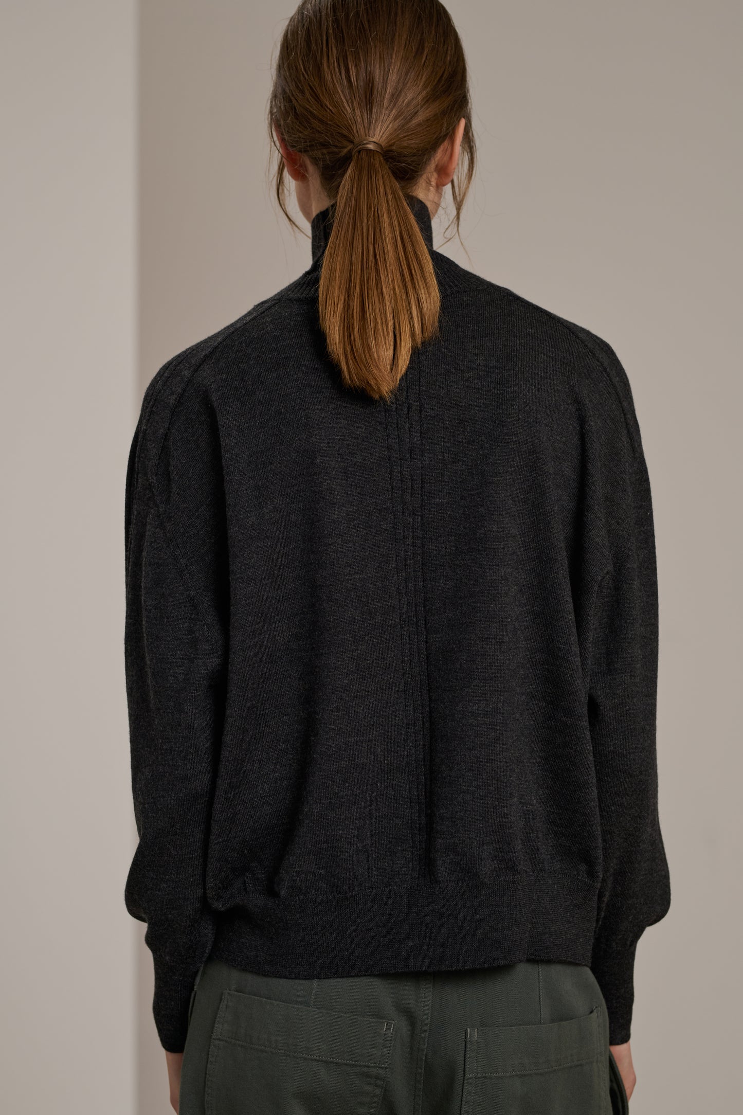 NORD is a merino wool jumper that seamlessly fits into a timeless wardrobe. This oversized turtleneck offers a roomy and comfortable fit, perfect to wear directly on the skin or as a layering piece. Signature Soeur details include ribbed detailing at the front and along the sleeves, with the collar and cuffs knitted in fine ribs.