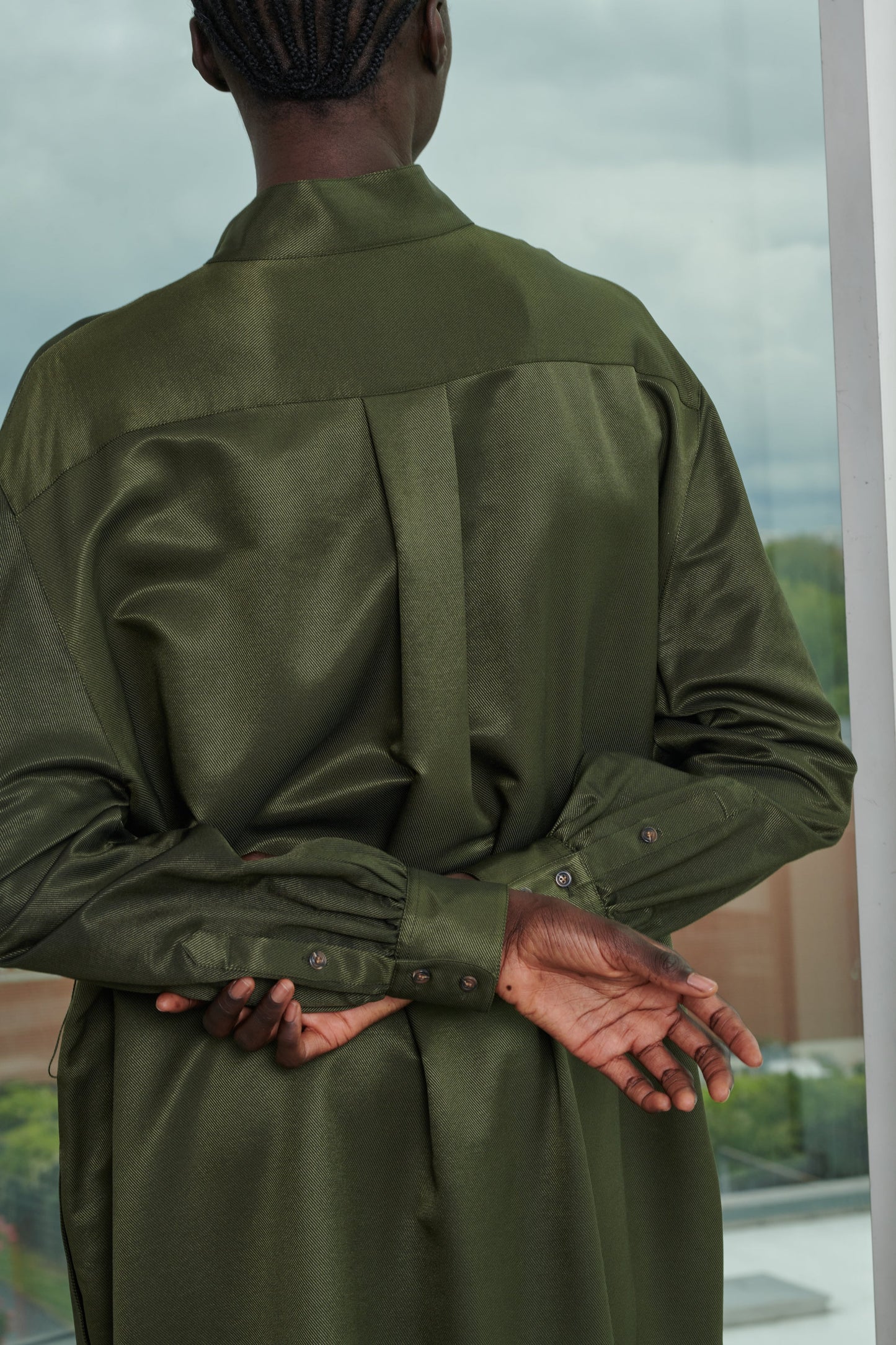 - Buttoned stand-up collar