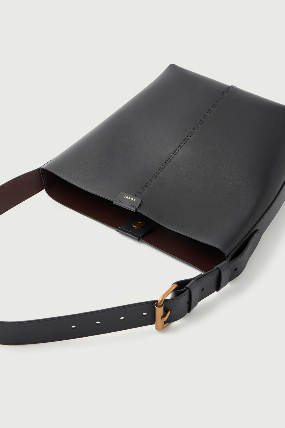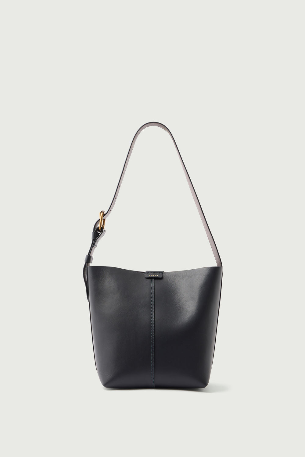 - Two-tone soft leather bucket bag with rectangular base